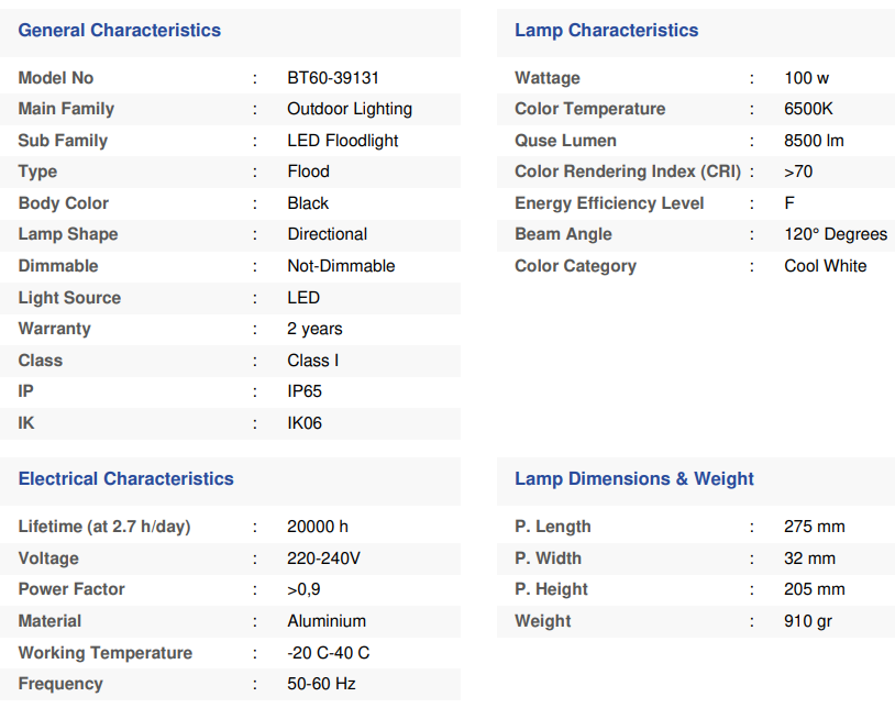 Led Flood-SF-100W-BLC-6500K-IP65-LED FLOODLIGHT