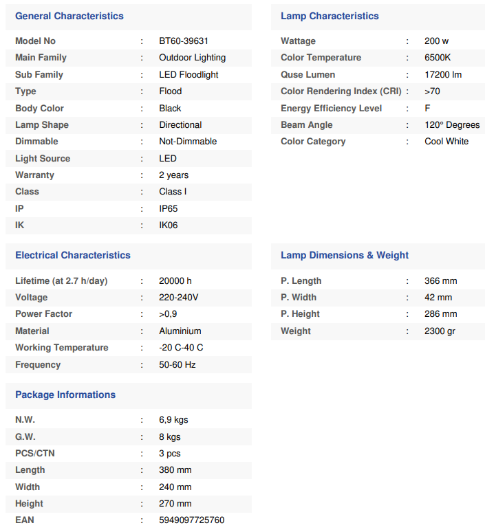 Led Flood-SF-200W-BLC-6500K-IP65-LED FLOODLIGHT